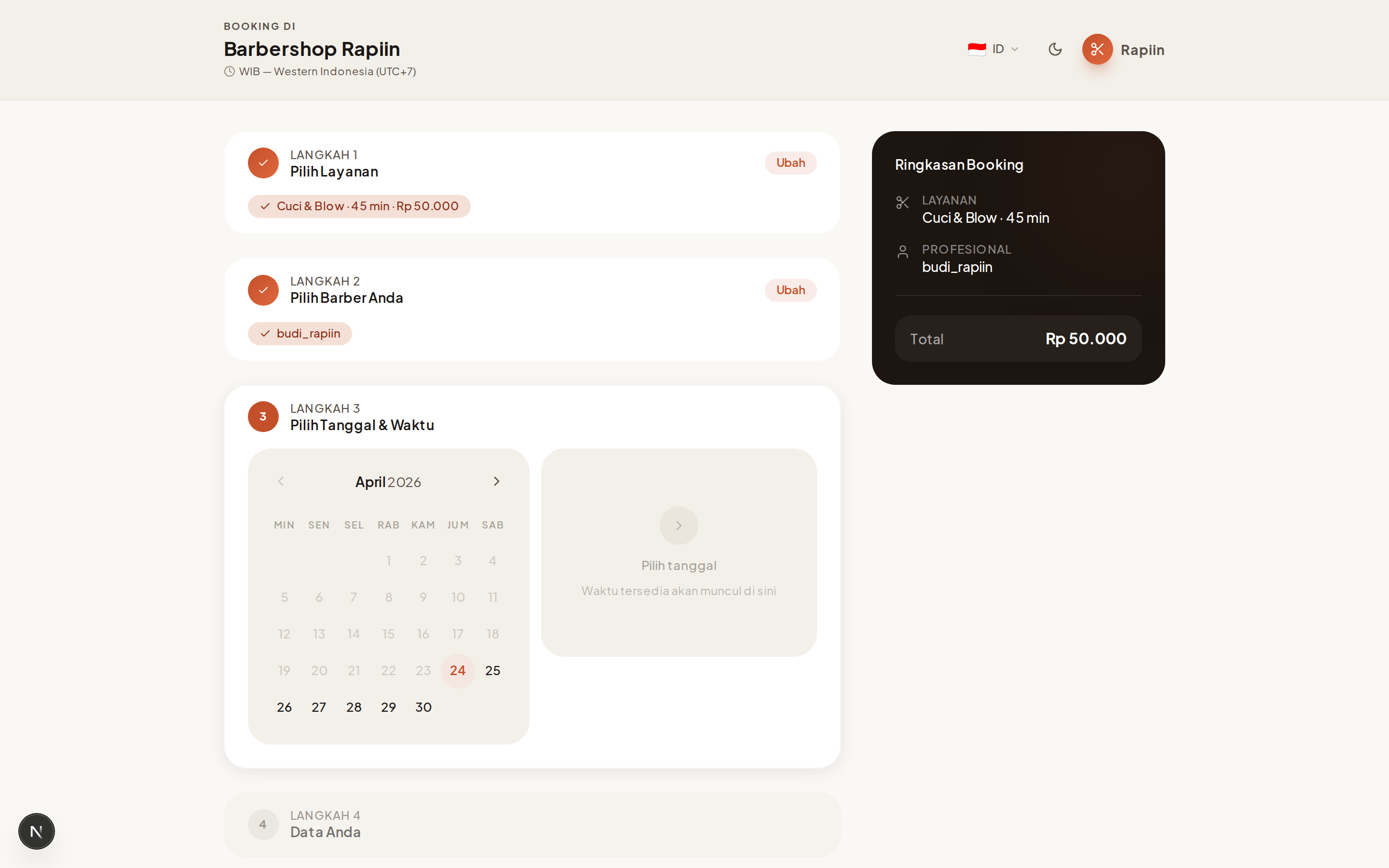 Langkah 3 — Pilih Tanggal & Waktu